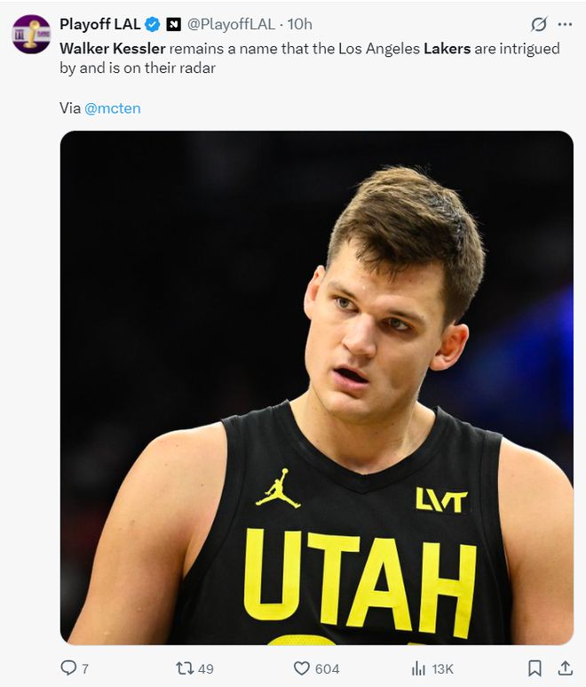 湖媒NBA Fan湖人要交易得到凯斯勒并非不可能,湖人只要取消2027年首轮保护(前4顺位保护在爵士队),那么湖人2026年首轮与2031年首轮就可以被交易,如果湖人真的要换来凯斯勒,我们下赛季真的有机会。