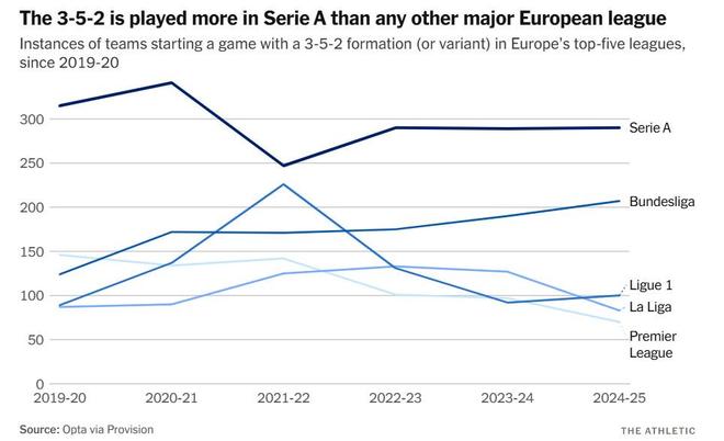 近日,The Athletic发布战术专题深度解析了近年来重获青睐的3-5-2阵型体系。该文从这一经典阵型的意大利足球根源入手,系统梳理了其在不同时期的战术演变,同时剖析了该体系在构建防守稳定性与进攻效率方面的独特优势,也指出了其在现代足球环境中的战术局限性,以下为专题文章。
