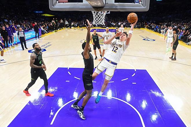 本场比赛中,湖人虽然取得了一场胜利,但是球队的替补侧翼新星杰克-拉拉维亚(Jake LaRavia)的表现其实是比较一般的。拉拉维亚全场出场25分31秒,投篮14中4,三分线外7中2,得到了10分5篮板2助攻1盖帽的数据,还有1次失误和1次犯规,正负值为+4。拉拉维亚在进攻端也是得到了不少的出手机会,然而他的进攻效率一塌糊涂,他在三分线外也是不断进行着打铁。拉拉维亚本场比赛确实是果断坚决了不少,但是效果还是没有发挥出来。拉拉维亚在防守端的表现也只能算是马马虎虎的水平,同样没有办法起到更大的作用。总体来看,拉拉维亚还是没有办法为球队提供更多的支持,他的贡献度依然是比较有限的。
